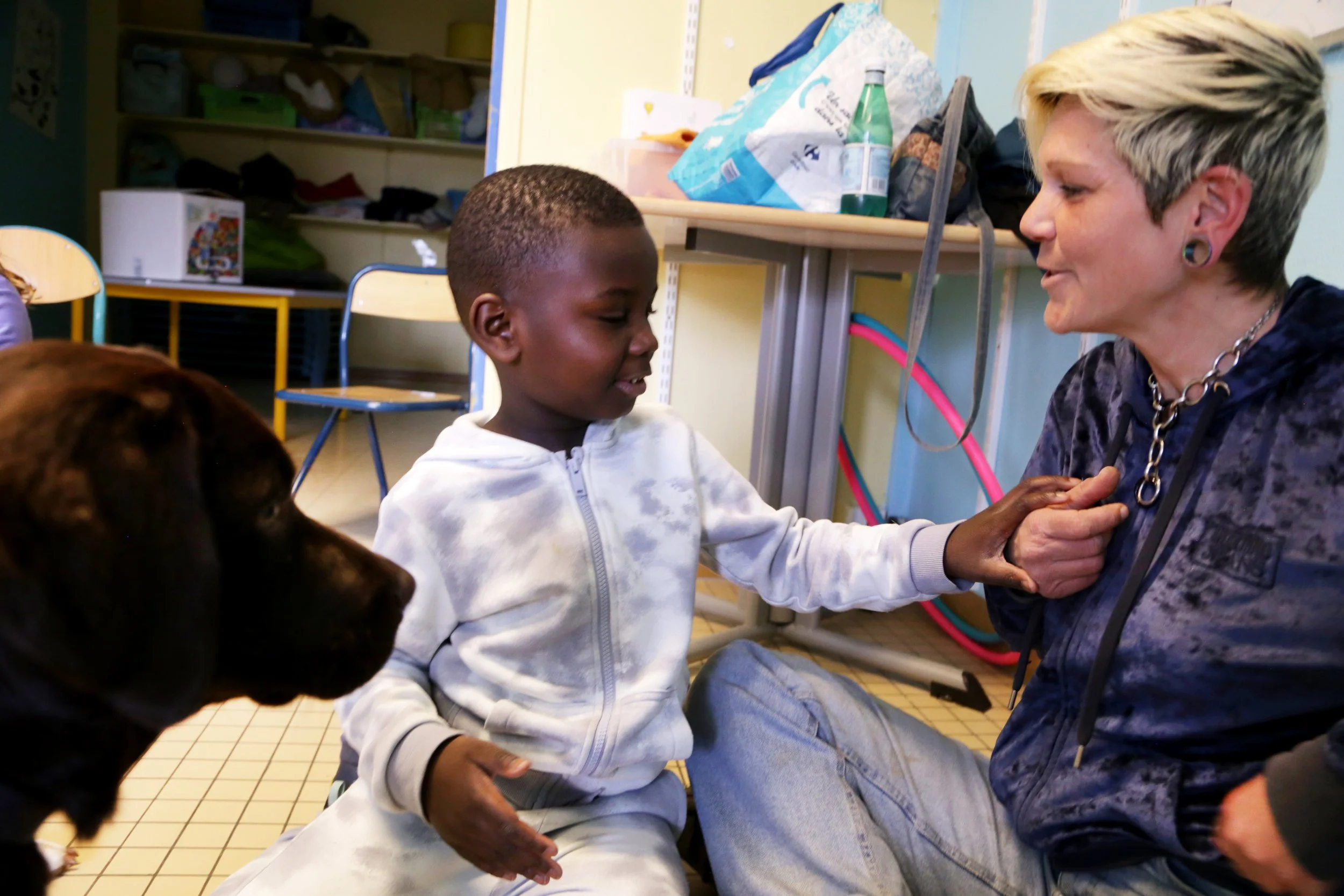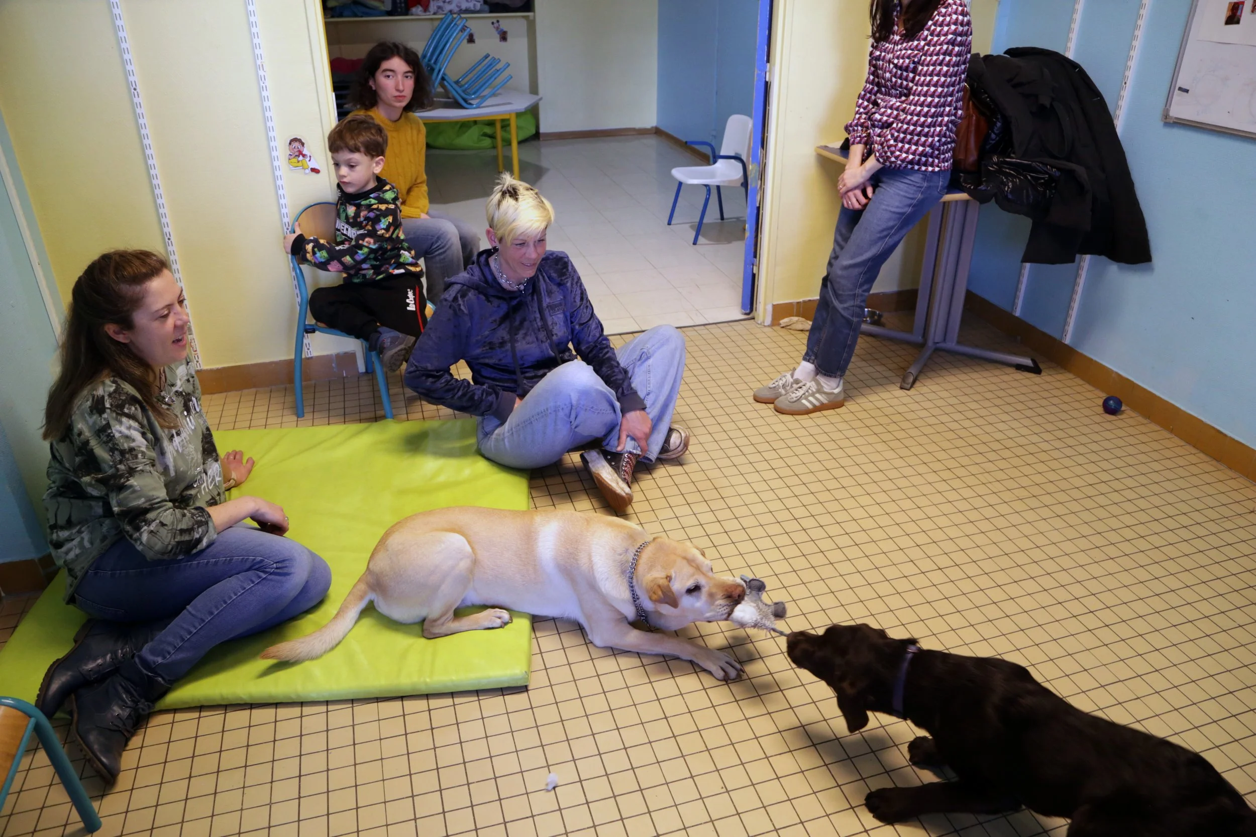 Renforcer la motricité et la communication : Interactions ludiques et affectueuses avec mes chiens. Les séances offrent un cadre apaisant où la relation avec l'animal aide à améliorer l'estime de soi.